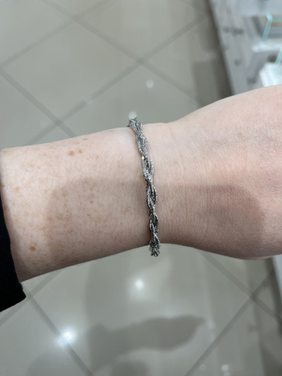 Сияющее переплетение серебра. Объемное на руке. Не темнеет. Не ломается.