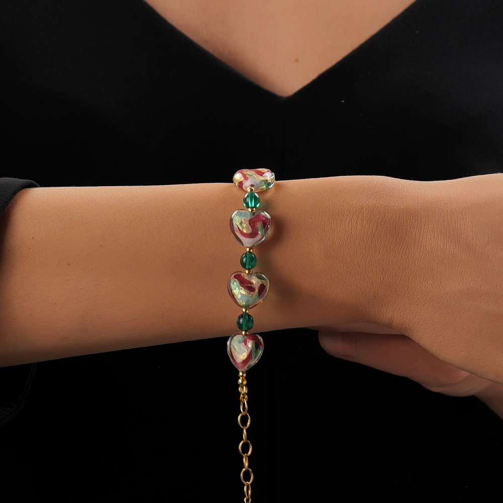 В украшениях из серебра Италии используется выполненная вручную вставка из муранского стекла, произведенная на севере Италии, на острове Мурано.