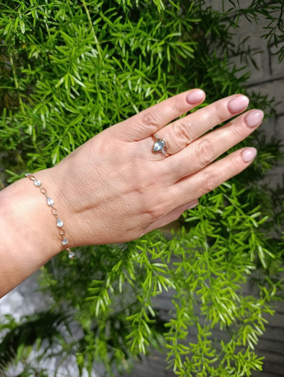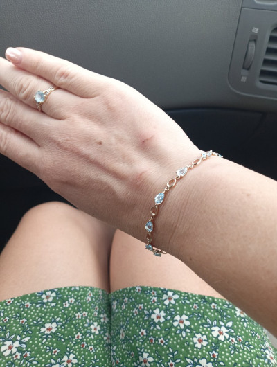 Браслет выглядит изящно, нежно, камушки блестят и переливаются. Регулируется по длинне за счет дополнительных звеньев. Нереальная красота!