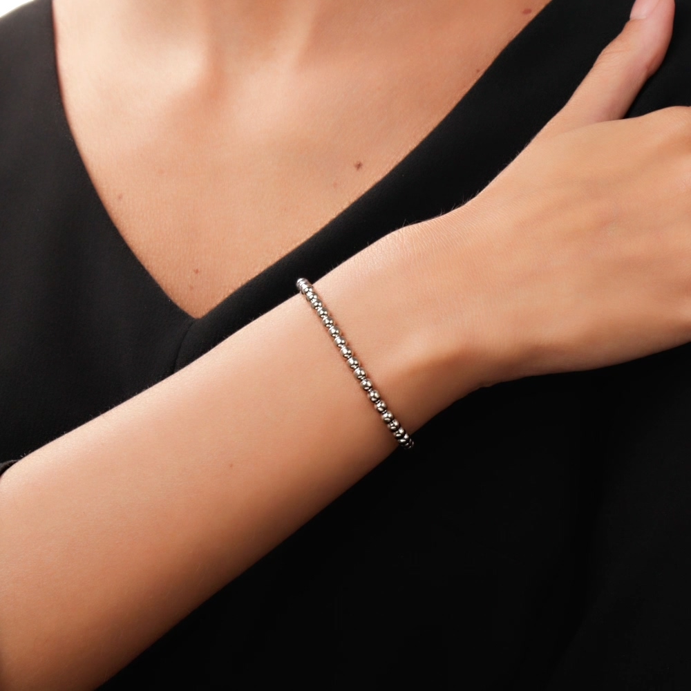 Очень давно искала браслет такого плана! Отлично сочетается с более утонченными браслетами, служит прекрасной базой к любым образам! Супер, я очень довольна!