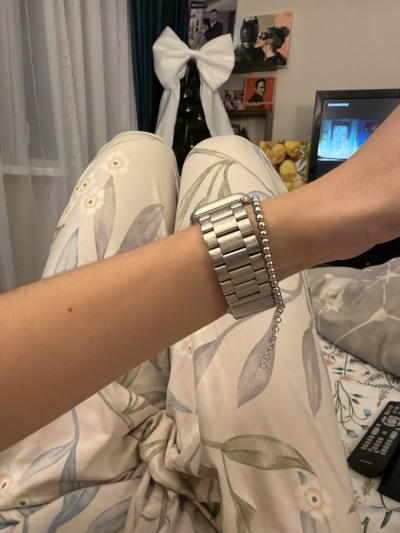 Очень стильный , довольна покупкой на 100%, ношу уже больше полугода, не снимая его вообще, никаких дефектов или поломок не произошло. Смотрится классно