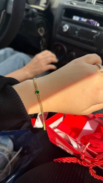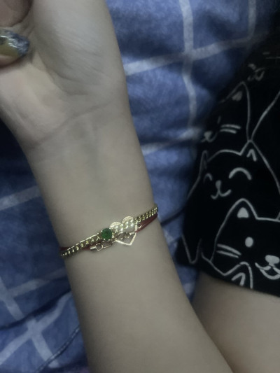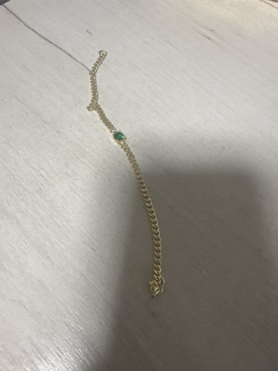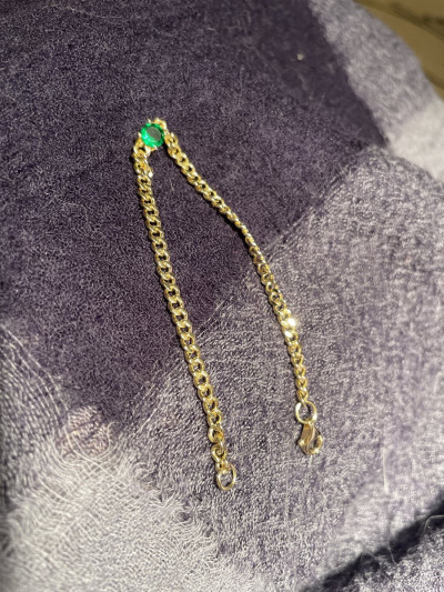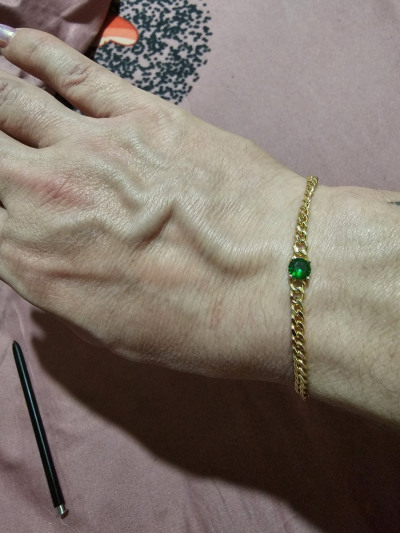 Давно ищу браслет под желтое золото с изумрудом. Браслет отлично ложится на руку. Обычный замочек. Яркий и не затеряется в образе. Единственное, что мне не нравится - нарочитая яркость искусственного бриллианта.