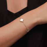 Браслет двусторонний клевер с перламутром и алмазными гранями
