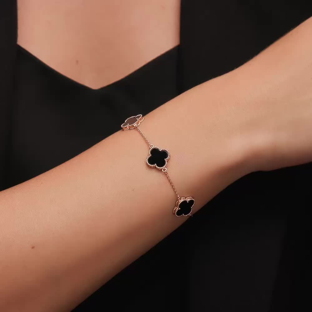 В редких случаях характеристики украшения или упаковка могут иметь отличия от представленных на фото или в описании.Браслет с 5 агатами черными природными;