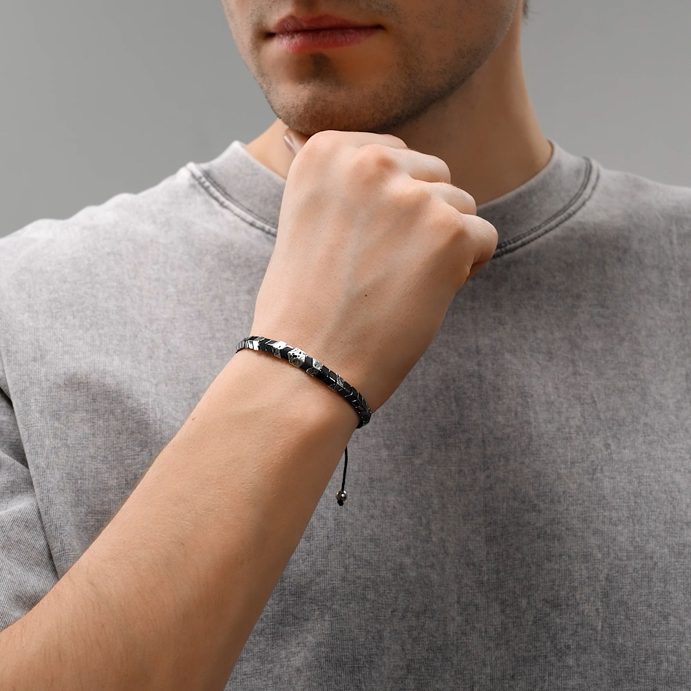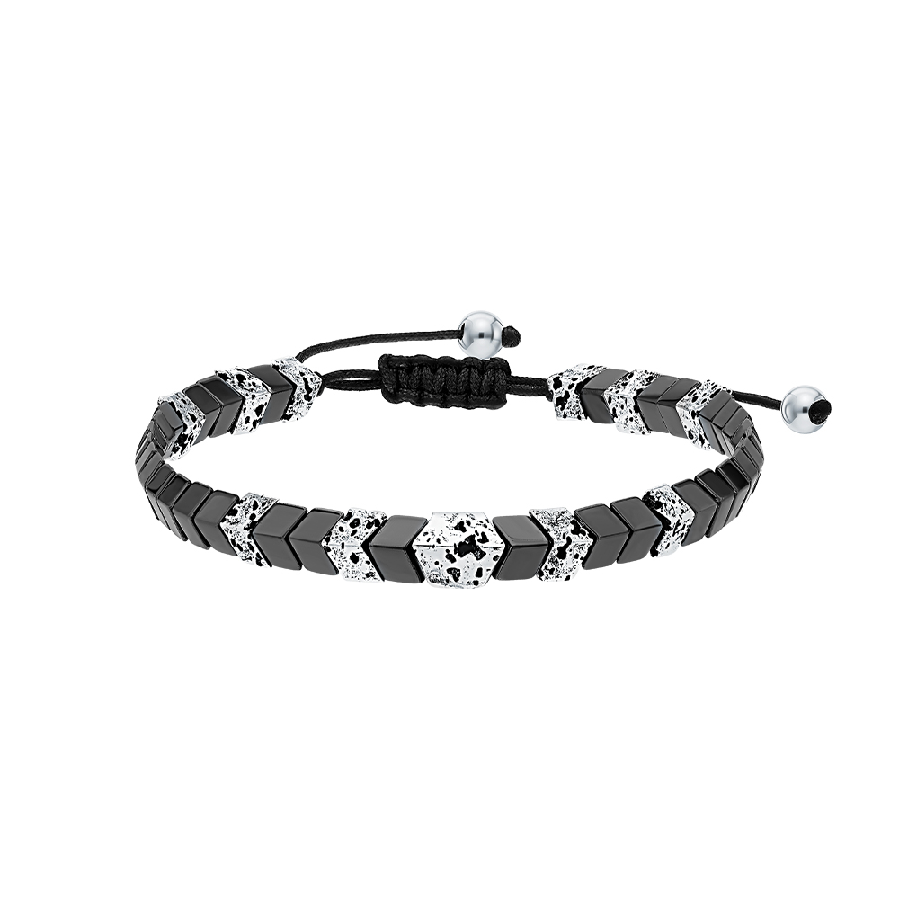 Текстильный браслет с гематитом, лавовым камнем и со сталью