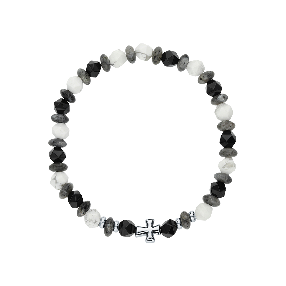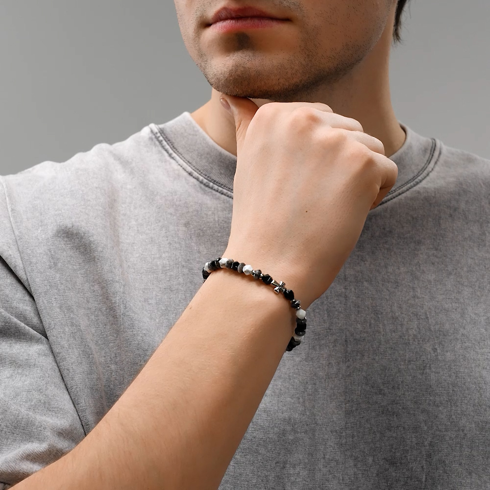 Стальной браслет с гематитом, агатом природным и лабрадоритом