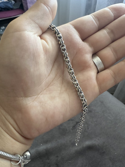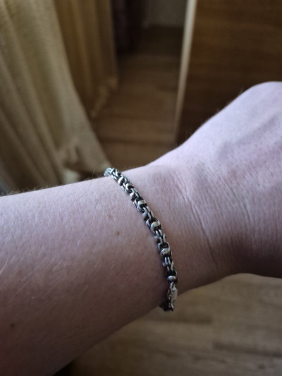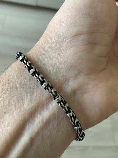 Замечательный объемный браслет брала для себя.Чернение только в середине,что ещё больше подчеркивает красоту плетения.Полагаю, что подойдёт как мужчине так и женщине.Он прекрасен.