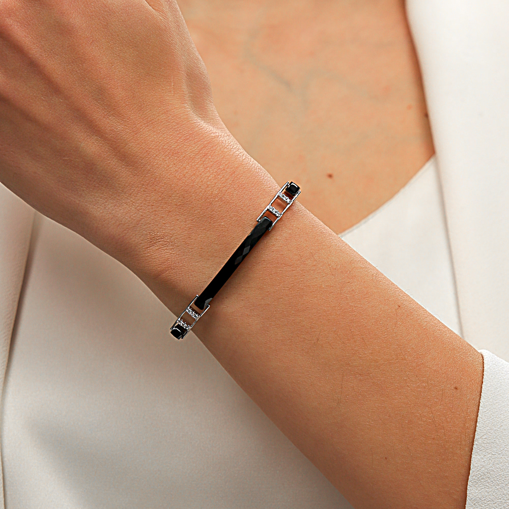 Серебряный браслет с керамикой и фианитами