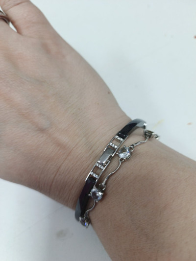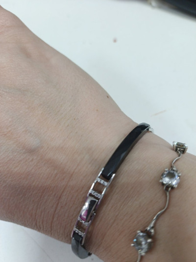 Очень милый браслет, хорошо сочетается с кольцами из керамики и фианитами.