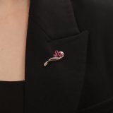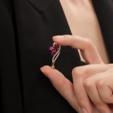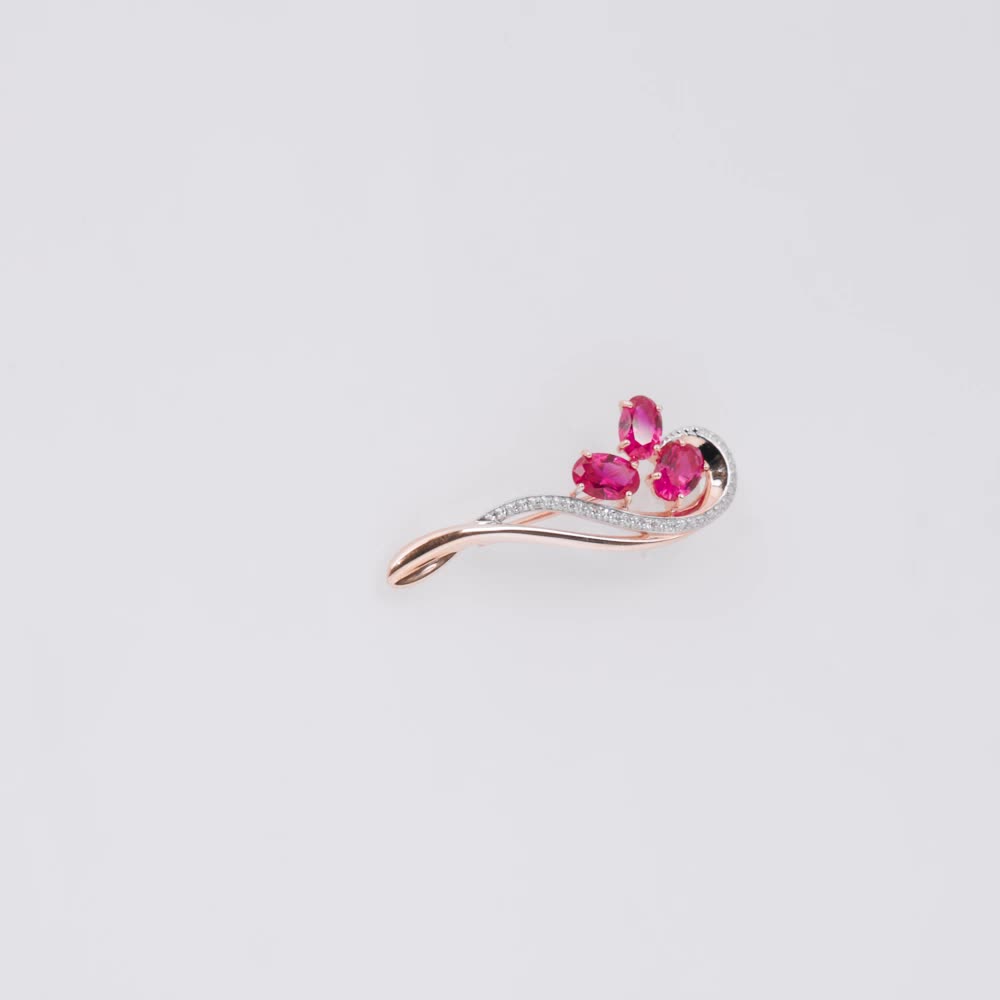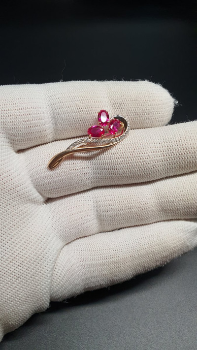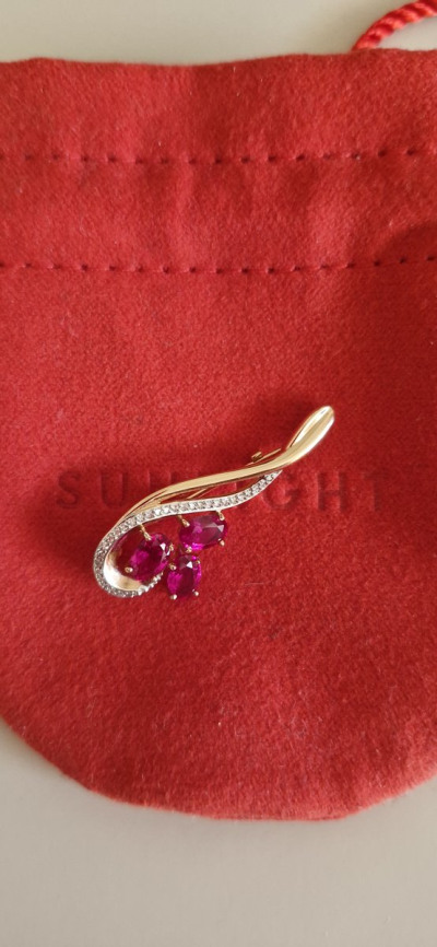 Золотая брошь с бриллиантами природными и рубинами выращенными