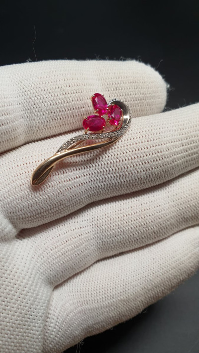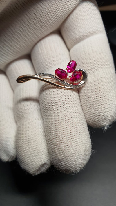 3 рубинами синтетическими, 1.6 карат;