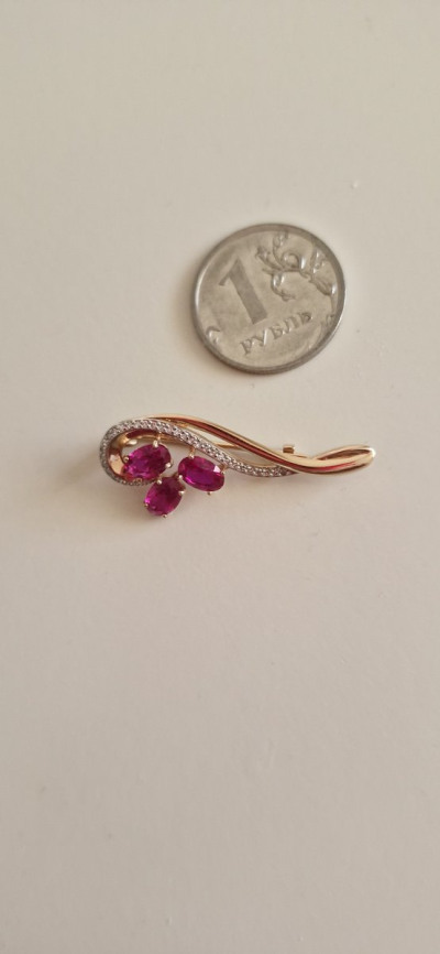 Брошь замечательная, не мелкая. Рубины и бриллианты сверкают.