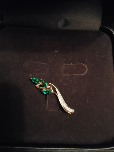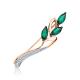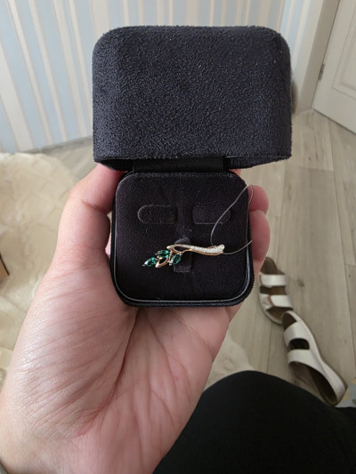 Золотая брошь с бриллиантами природными и изумрудами выращенными