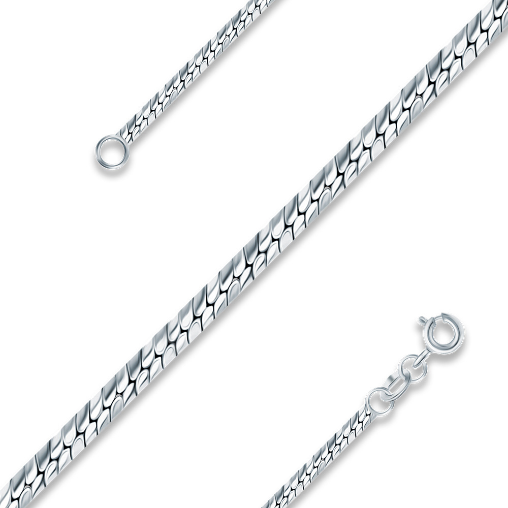Цепочка с плетением "Снейк" – универсальное украшение, которое подойдет на все случаи жизни. Ювелирный аксессуар напоминает скрученную туго веревку, состоящую из плотно соединенных элементов одной плоскости. Основные компоненты изделия – кольца, замок и звенья. Чередование и определенное расположение элементов создают уникальный вид плетения.