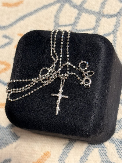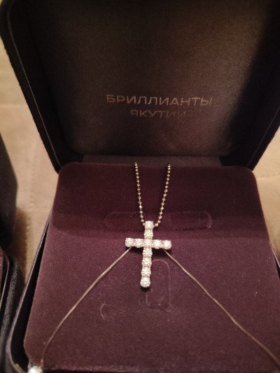 Подбирала цепочку к браслету, чтобы шарики были одного диаметра. Дополнительно приобрела крест из платины. Цепочка сверкает и переливается за счет граней. Смотрится необычно.
