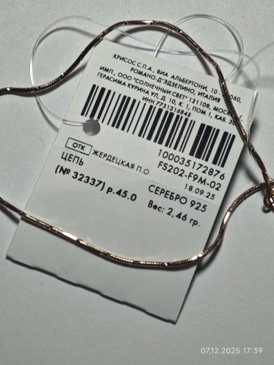 Купила позолоченную серебряную цепочку производство Италия. Покупкой довольна. Цепь шикарная ! Переливается! Давно мечтала о такой. Подарок на новый год себе купила !