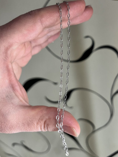 Цепочка очень нежная, ажурная, напоминает узоры инея❄️ Мне нравится составлять сеты с ней, смотрится очень классно. Интересное плетение, цена - подарок, за любимую Италию.