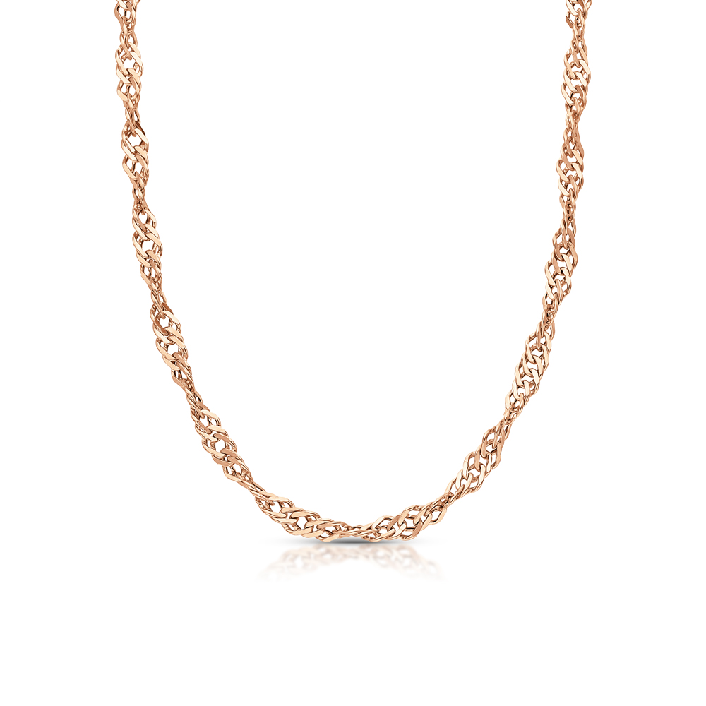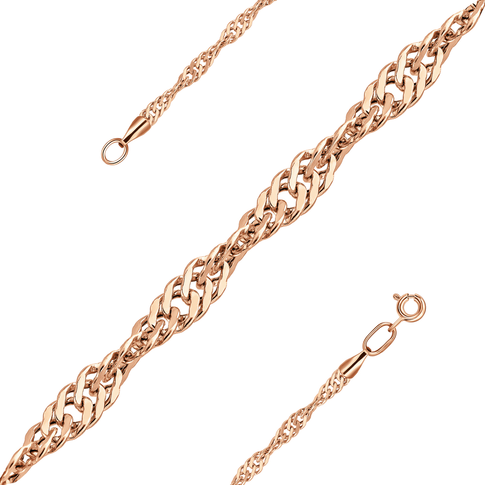"Сингапур" - плетение на основе двойного панцирного плетения. Звенья в цепи соединены в сложную спиралевидную структуру, обеспечивая потрясающий блеск от солнечных лучей под разным углом.