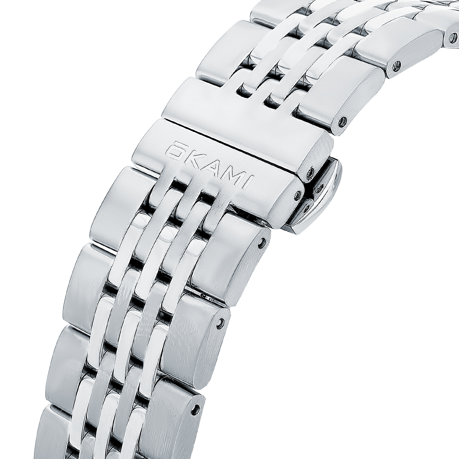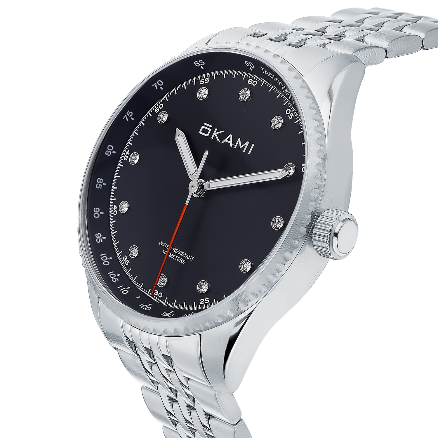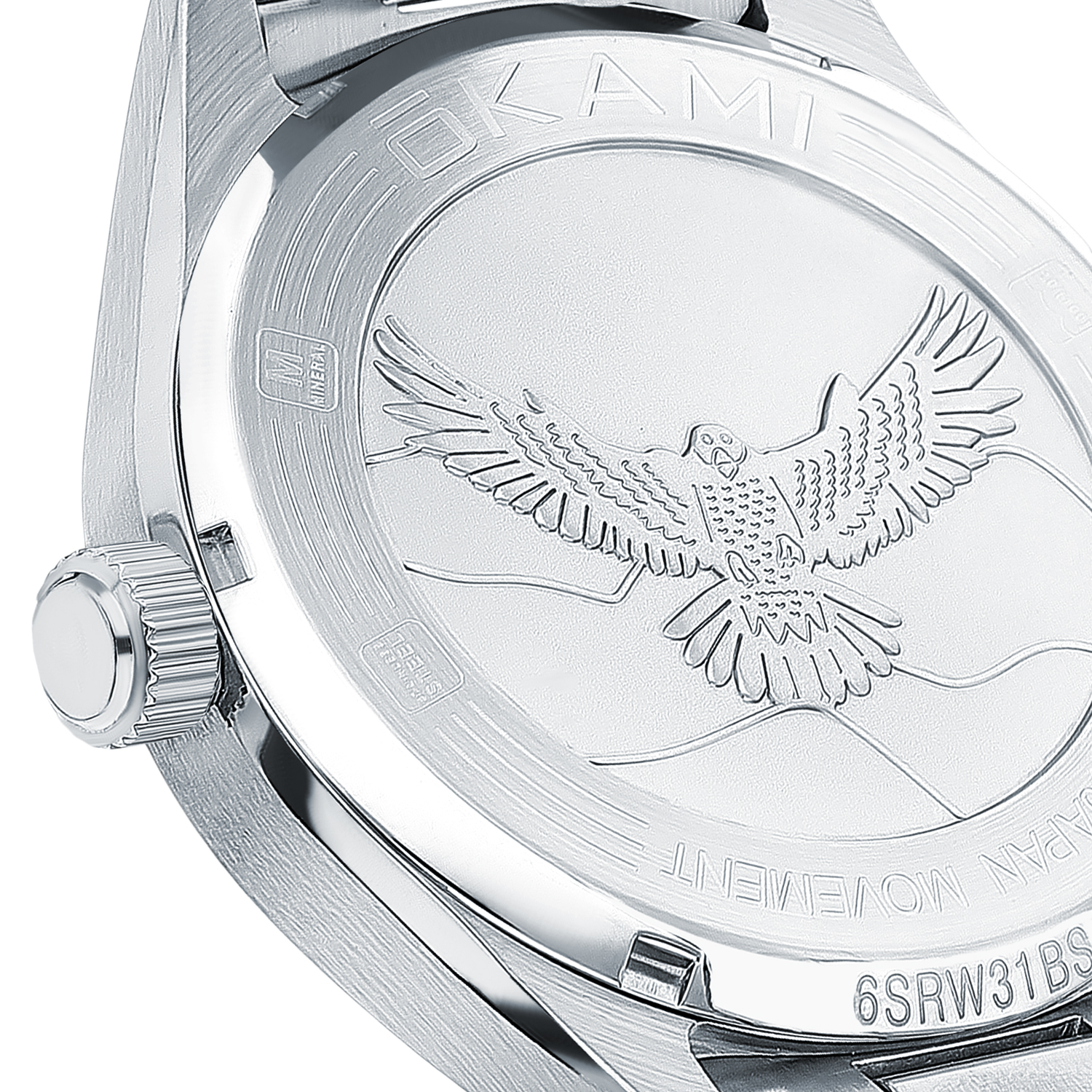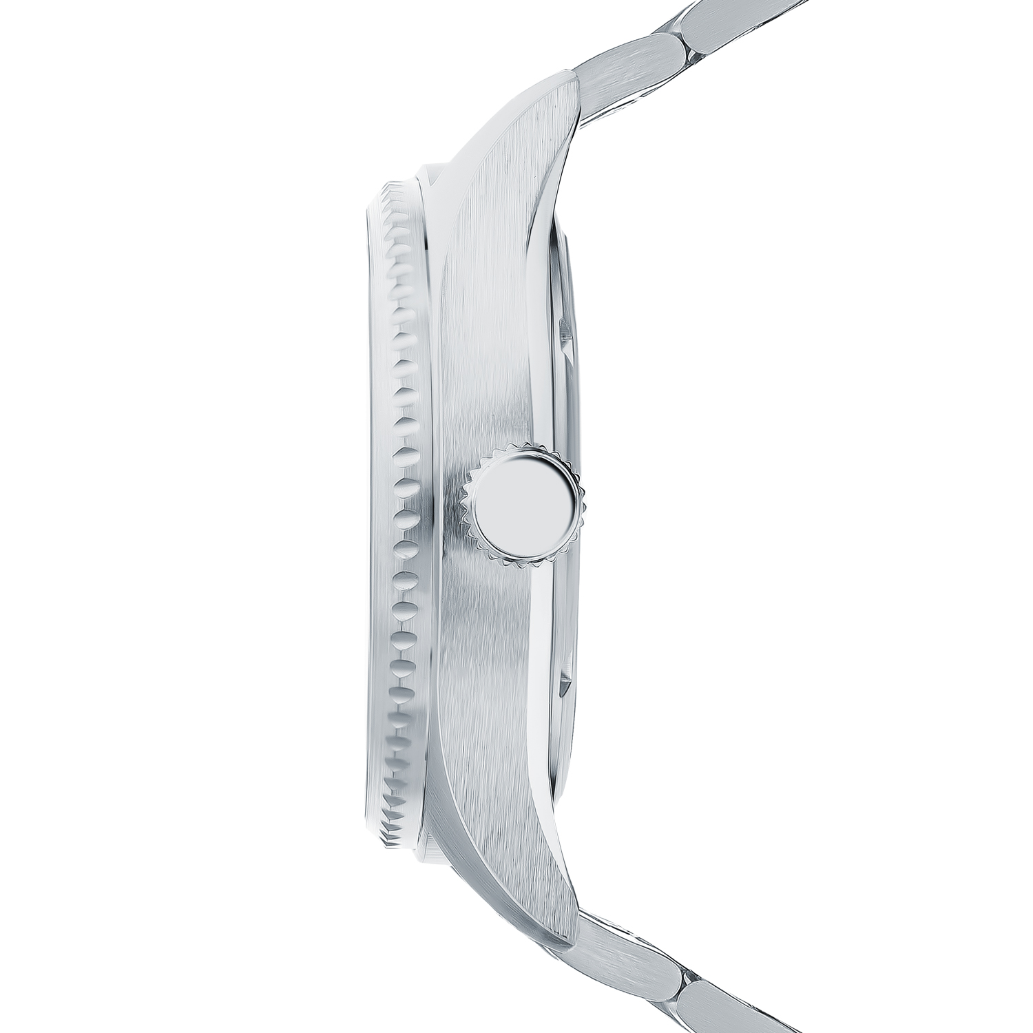 Корпус выполнен из стали, минеральное стекло с антибликом защищает циферблат от внешнего воздействия. Японский кварцевый механизм Miyota 2035 обеспечивает точный ход и оснащен функциями времени в 12 часовом формате и секундной стрелки. Водозащита 10 bar (100 m/330 ft)* позволяет плавать в часах.