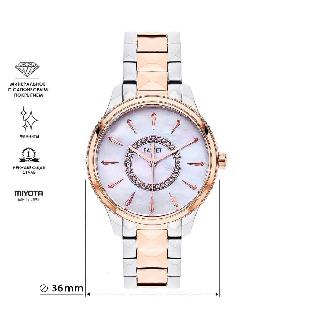 Корпус выполнен из стали 316L, минеральное стекло защищает циферблат от внешнего воздействия. Японский кварцевый механизм Miyota 2035 обеспечивает точность и оснащен функциями времени в 12 часовом формате, секундной стрелкой и датой. Водозащита 5 bar (50 m/165 ft)* позволяет мыть руки в часах, а так же защитит от брызг и дождя.