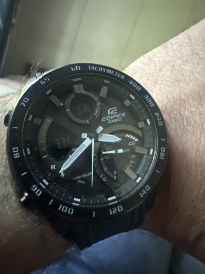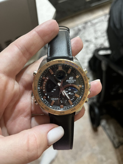 Перед вами сверхстильная модель EDIFICE из аналого-цифровой серии Edifice ECB в корпусе ECB-900. Модель обладает новым динамичным дизайном с визуальными отсылками к автомобильному спорту: стальной корпус защищает модуль от внешних повреждений, циферблат покрыт прочным минеральным стеклом и стальным безелем, золотистые акценты в дизайне подчеркивают спортивный характер модели. Начинка часов не отстает от внешнего вида: солнечная батарея, обеспечивающая часам неиссякаемый заряд энергии, технология Bluetooth®, позволяющая синхронизировать часы со смартфоном, высокоточный секундомер с шагом 1/1000 секунды, привычная для часов Edifice водозащита 100 метров и двойная светодиодная подсветка.