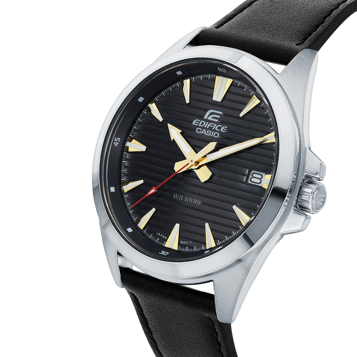 Лаконичная и аккуратная модель из серии EFV-140 в стальном корпусе на ремешке из натуральной кожи. Пожалуй, это одни из самых спокойных и минималистичных часов Edifice на сегодня. Черный циферблат защищен прочным минеральным стеклом, а водозащита позволяет пользоваться часами в любых погодных условиях.