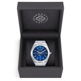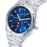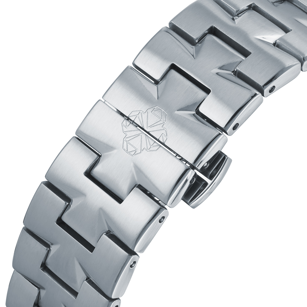 Премиальная коллекция Platinum объединила в себе все лучшее из часовой индустрии: безупречный дизайн и швейцарское качество в каждой детали. Дизайн модели определяет статус своего обладателя, где часы становятся неотъемлемой составляющей образа современного мужчины. Отличительная черта - наличие безеля с шестью выступами из нержавеющей стали. Корпус выполнен из стали 316L, сапфировое стекло с антибликом защищает циферблат от внешнего воздействия. Подсветка Luminova дает возможность пользоваться часами в темное время суток. Надежный швейцарский кварцевый механизм Ronda 706.3 оснащен функциями времени в 12 часовом формате. Циферблат серебристый с 3 дополнительными глазками, указатель фаз Луны в положении "6 часов". Водозащита 10 bar (100 m/330 ft)* позволяет плавать в часах.
