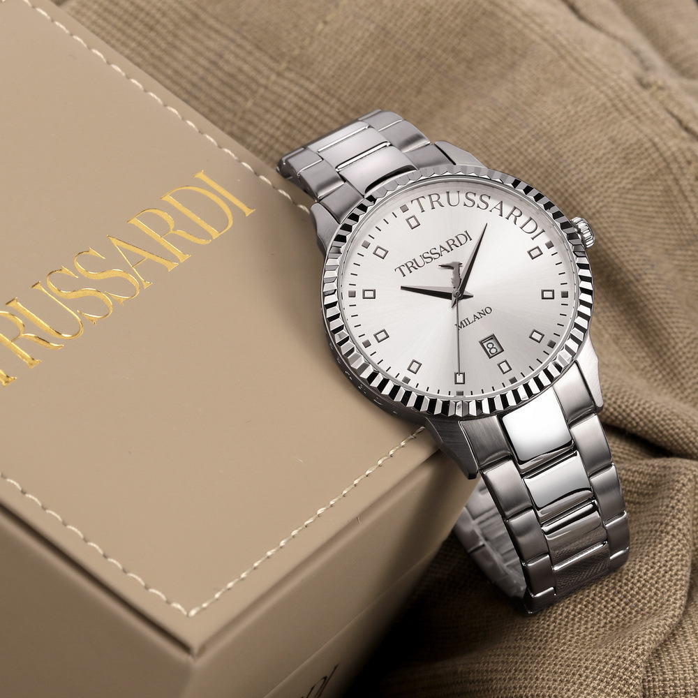 Брендовые акценты в современном дизайне часов Trussardi R2453141004 из коллекции T-BENT создают особый и запоминающийся образ. В этой модели все внимание приковано к деталям: зубчатый безель, четкие линии стрелок и индексов, символ бренда Greyhound на противовесе секундной стрелки. В часах установлен японский кварцевый механизм. Окошко даты. Прочное минеральное стекло. Диаметр корпуса – 43 мм. Водостойкость 5 АТМ (мытье рук, дождь). Часы выполнены из нержавеющей стали 316L. Браслет с раскладывающейся застежкой (клипса). Гарантия 2 года. Страна производства - Италия. В комплекте с часами: индивидуальная упаковка, паспорт, инструкция, гарантийный талон. Итальянский модный бренд с вековой историей и традициями. Компания была основана Данте Труссарди в 1911 году в Бергамо как небольшая фабрика по производству дорогих роскошных кожаных перчаток. За несколько лет его высококачественное сырье и постоянное совершенствование методов обработки кожи сделали Trussardi одной из самых известных фирм на международном рынке аксессуаров, а Данте Труссарди стал официальным поставщиком британской королевской семьи.