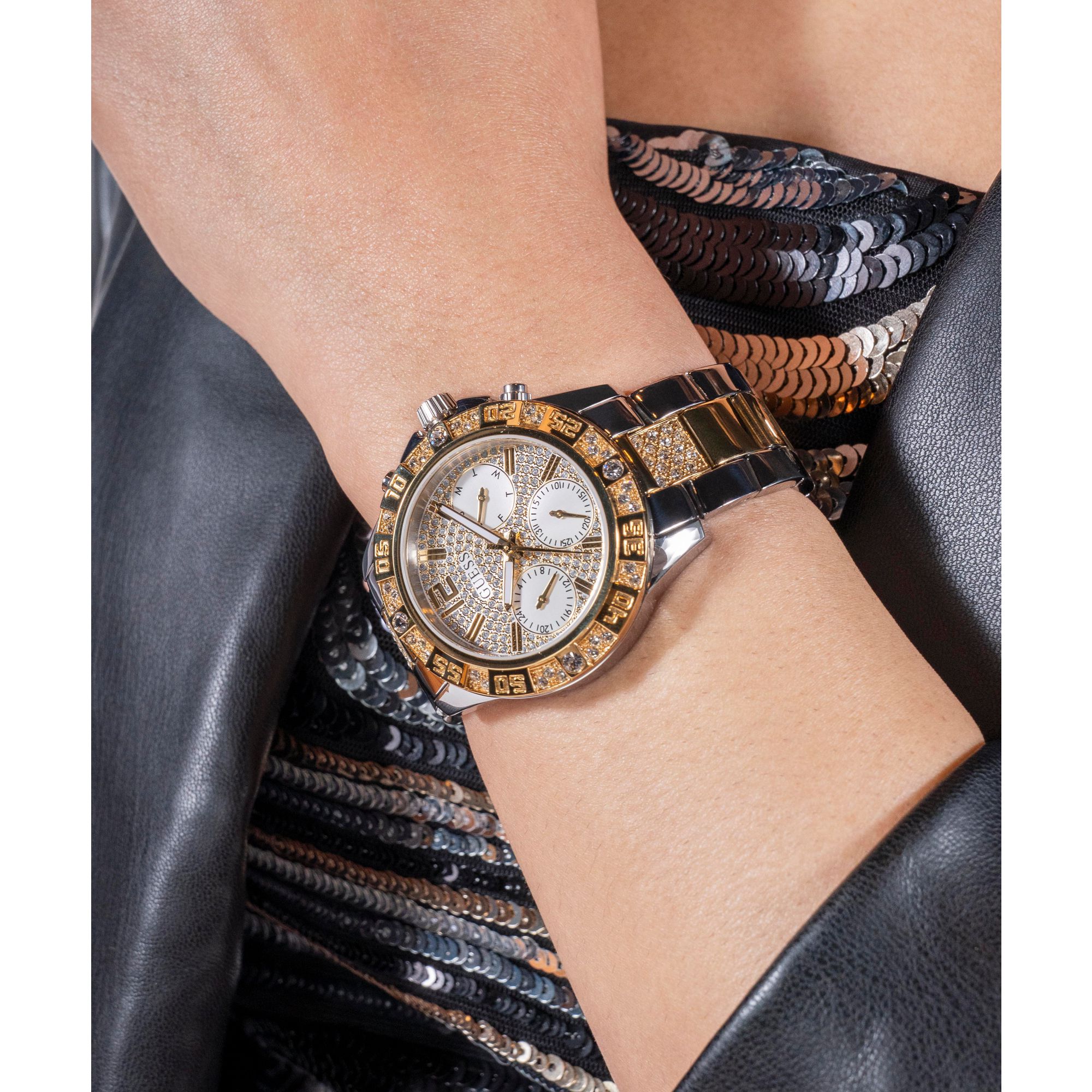 Женские наручные часы GUESS модель GW0771L3 из коллекции GUESS SPORT. Японский кварцевый мультифункциональный механизм VX9JE1S SEIKO (TMI) с вынесенными на отдельные циферблаты датой, днем недели и часовой стрелкой в режиме 24 часа использующий элемент питания SR927SW. Стальной корпус размера 40 мм. Минеральное стекло. Стальной браслет. Водостойкость 5 АТМ (мытье рук, дождь). GUESS – лидер в индустрии фешен часов по длительности присутствия на рынке и по ширине коллекции, ежегодно создает более 100 новинок. Компания GUESS Watches, основанная в 1984 году в Лос-Анджелесе (США) как пионер революции, возглавила трансформацию часов из простого инструмента для определения времени в стильный аксессуар. Бренд не боится экспериментировать. Разнообразные формы корпуса, сложно декорированные циферблаты, уникальный дизайн браслетов. GUESS – это про тренды и технологии в мире моды. Это яркие и дизайнерские часы, призванные угодить самым смелым фешн-драйверам и энтузиастам моды по всему миру. Страна-изготовитель: Филиппины. При изготовлении используются только надежные Японские механизмы. ВНИМАНИЕ! Заявленная водостойкость гарантируется только при плотно закрытой или закрученной заводной головке!