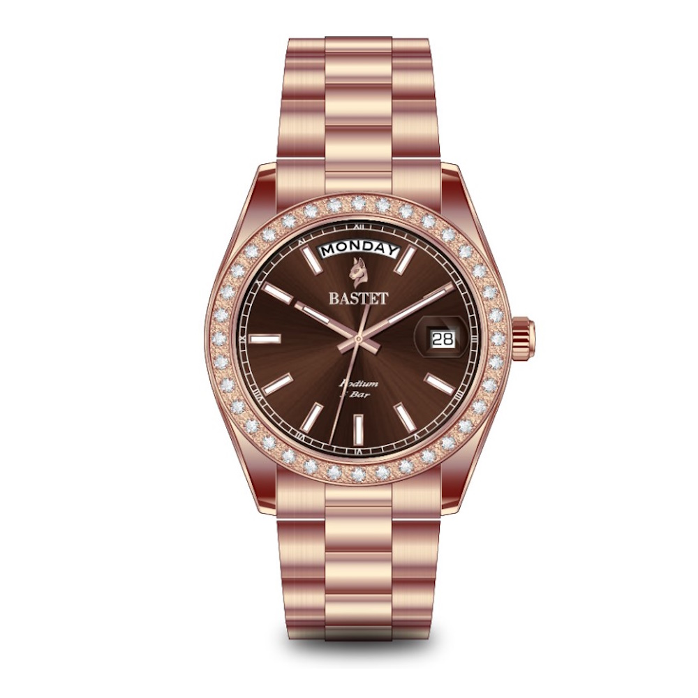 Безель данной модели украшен кубическим цирконием. *Давление выраженное в атмосферах и метрах не должно рассматриваться как эквивалент глубине погружения в воду. Герметичность часов обеспечена специальными уплотнителями на задней крышке, кнопках и переводной коронке. Герметичность сохраняется в закрытом положении всех элементов. Не подвергайте часы нагреву, так как он способен привести к деформации уплотнителей.