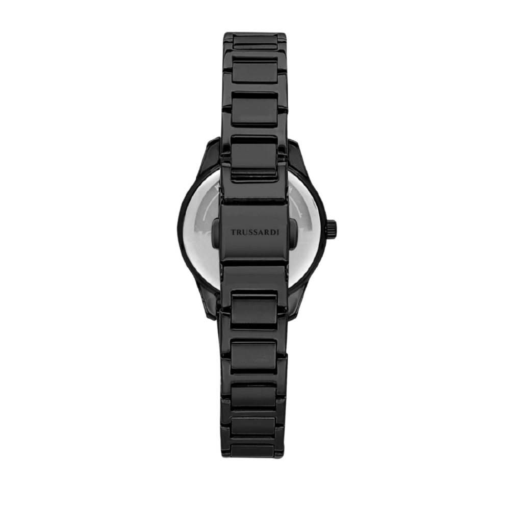 Итальянские часы Trussardi R2453151518 из коллекции T-SKY для динамичной современной женщины. Модель станет дополнением эффектного образа и позволит быть в центре внимания. Черный корпус с безелем цвета розового золота. В часах установлен японский кварцевый механизм TMI VJ21. Прочное минеральное стекло. Люминесцентное покрытие стрелок. Диаметр корпуса – 30 мм. Водостойкость 5 АТМ (мытье рук, дождь). Рифленая заводная головка. Часы выполнены из нержавеющей стали 316L. Браслет с раскладывающейся застежкой (клипса). Гарантия 2 года. Страна производства - Италия. В комплекте с часами: индивидуальная упаковка, паспорт, инструкция, гарантийный талон. Итальянский модный бренд с вековой историей и традициями. Компания была основана Данте Труссарди в 1911 году в Бергамо как небольшая фабрика по производству дорогих роскошных кожаных перчаток. За несколько лет его высококачественное сырье и постоянное совершенствование методов обработки кожи сделали Trussardi одной из самых известных фирм на международном рынке аксессуаров, а Данте Труссарди стал официальным поставщиком британской королевской семьи.
