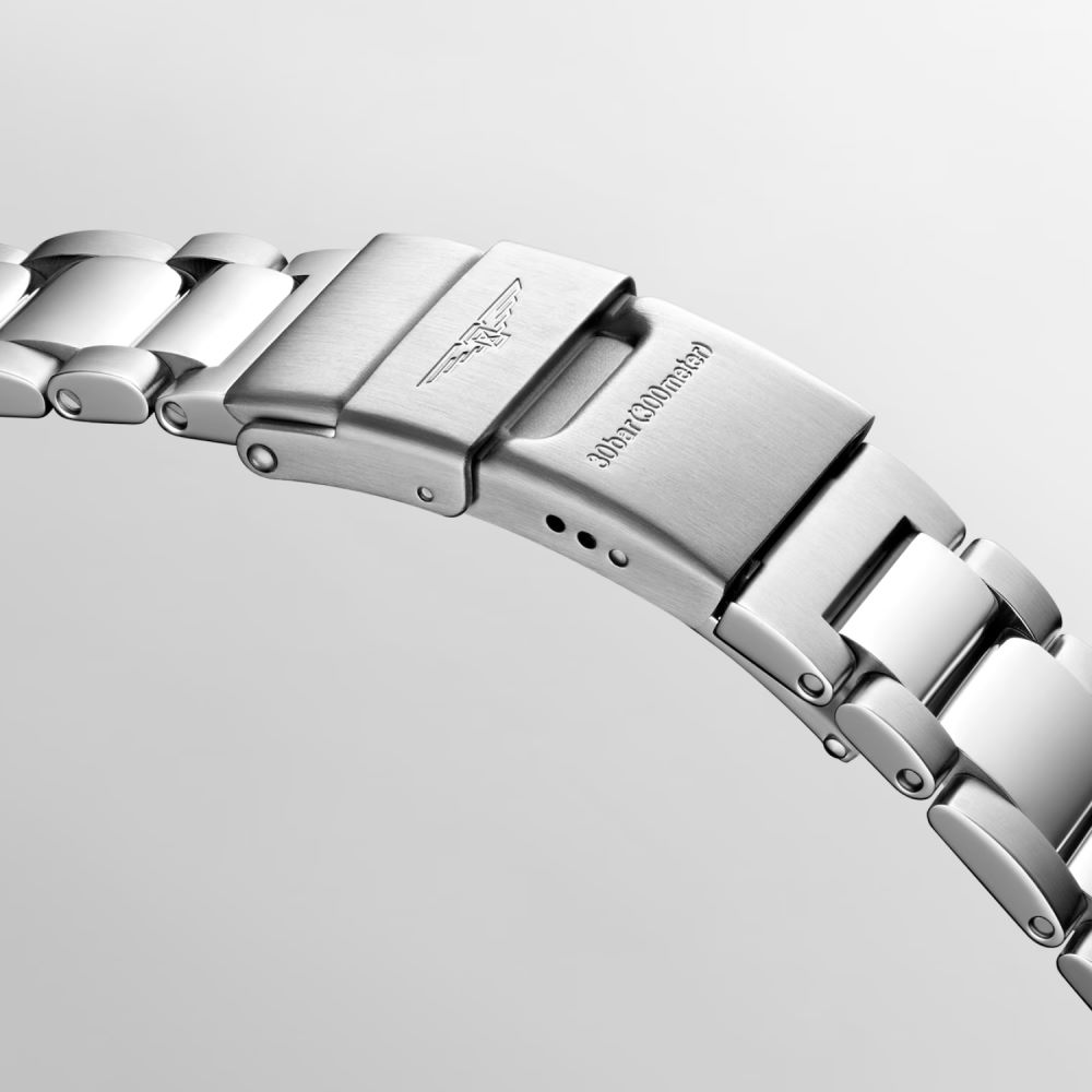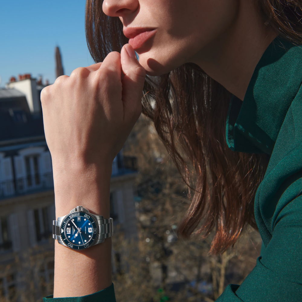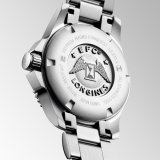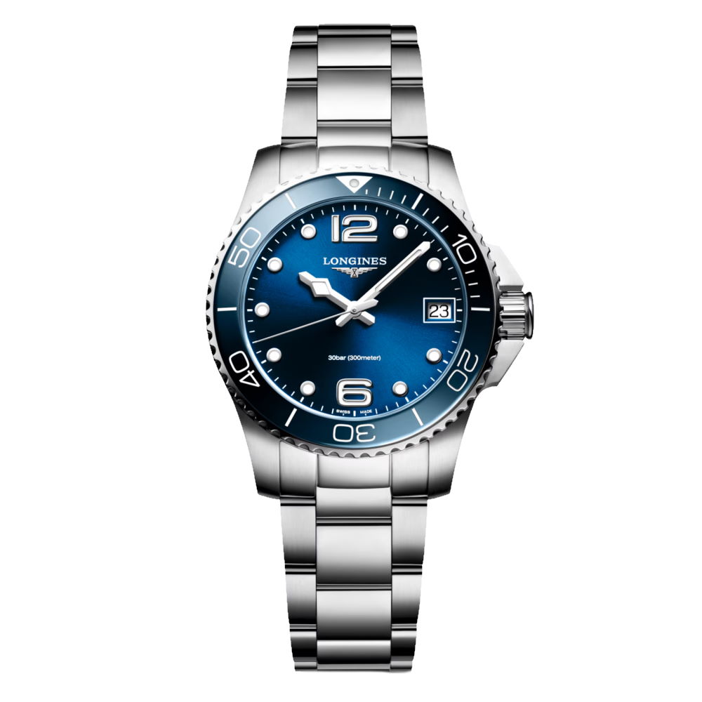 Женские кварцевые часы LONGINES HYDRO CONQUEST модель L3.370.4.96.6. Диаметр корпуса 32 мм, толщина 11,35 мм. Вес 101,6 грамм. Синий циферблат, индексы с покрытием Swiss Super-LumiNova®. Кварцевый механизм LONGINES L156 с элементом питания RENATA 371. Данная модель оснащена функциями отображения часов, минут, секунд и даты, а также функцией индексации заряда батареи E.O.L. Устойчивое к царапинам сапфировое стекло с многослойным антибликовым покрытием изнутри. Браслет шириной крепления 16 мм. Застежка с блокиратором. Водостойкость 30 BAR (300 м), позволяет в часах заниматься дайвингом. Швейцарская точность и надёжность, проверенные временем. ВНИМАНИЕ! Заявленная водостойкость гарантируется только при плотно закрытой или закрученной заводной головке!
