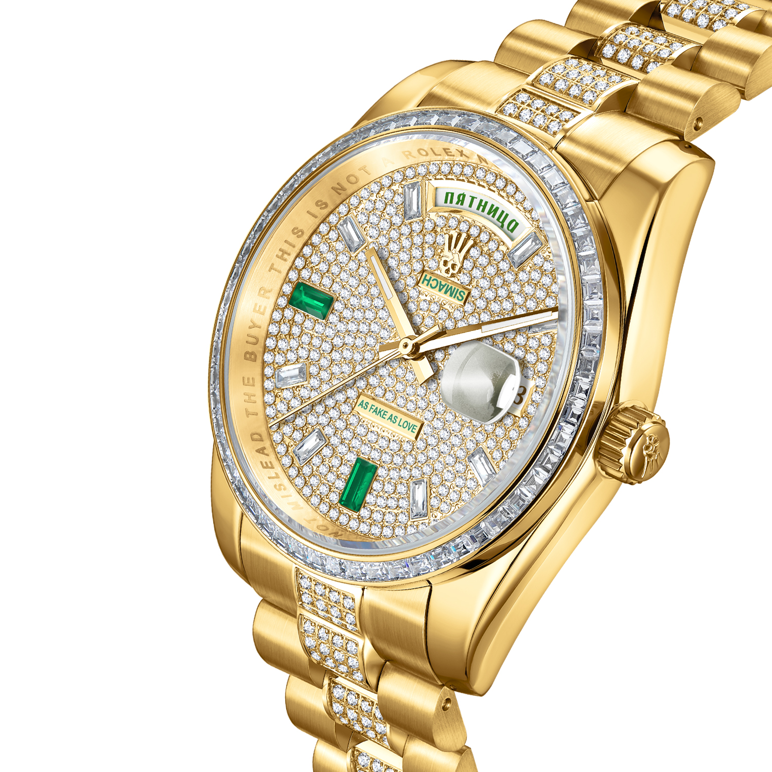 И как вишенка на торт - на этих часах дата и день недели являются декором циферблата, а не функцией механизма, поэтому они всегда показывают ПЯТНИЦУ 13ое.