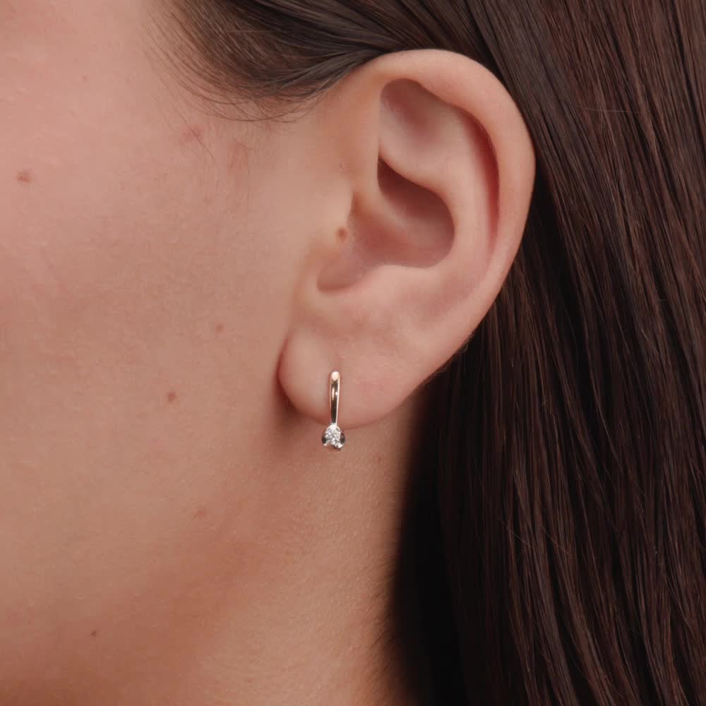 Серьги с 2 бриллиантами природными, 0.08 карат, огранка круг 57 граней, цвет 4, чистота 6, тип огранки А;