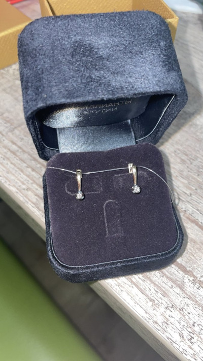 Серёжки красивы, современны, на небольшую мочку. Бриллианты заметно сверкают на солнце.