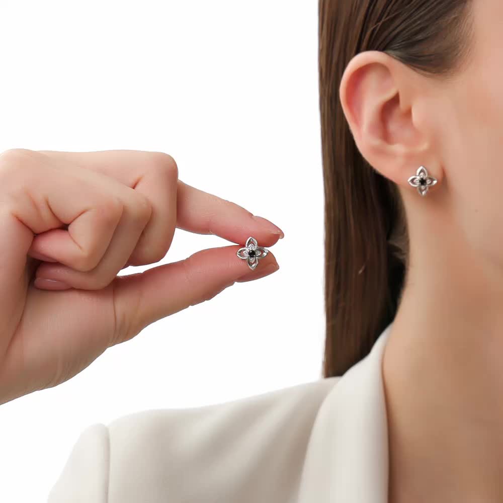 Серьги с 2 шпинелями черными природными, 0.2 карат;