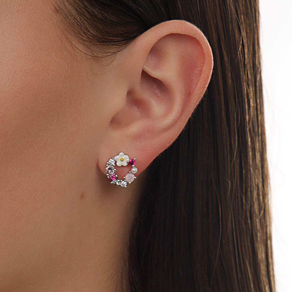 Серебряные серьги с эмалью, жемчугом и фианитами