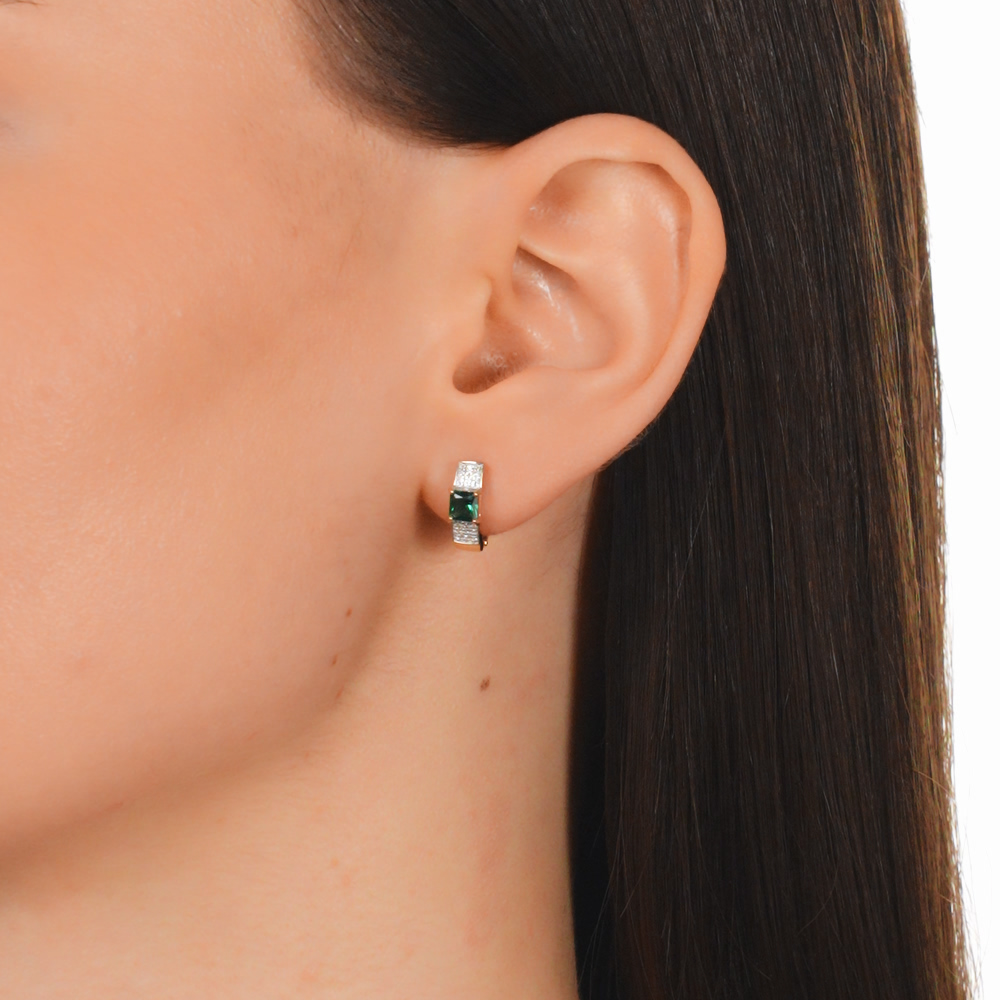 Золотые серьги с бриллиантами природными и изумрудами выращенными