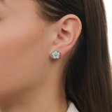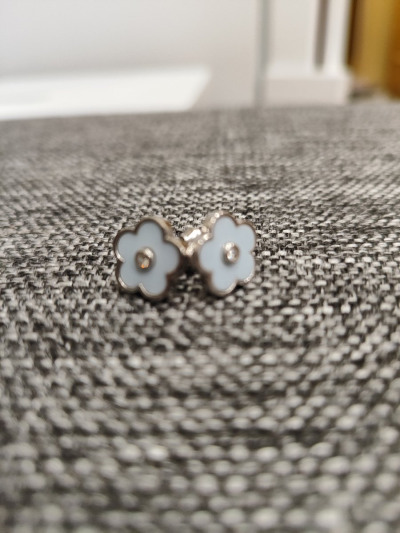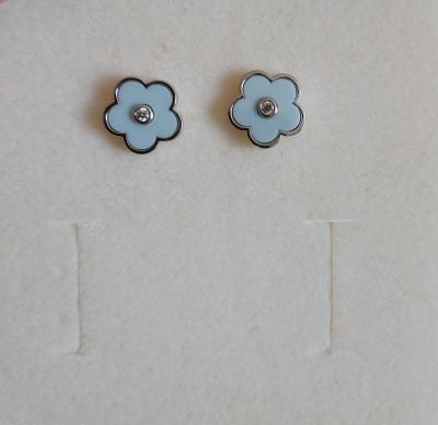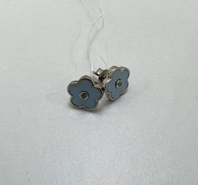 Серьги с фианитом и керамикой красивого светло-голубого цвета. Серьги нормального размера для гвоздиков, не мелкие, но и не громоздкие. Красивые цветочки.