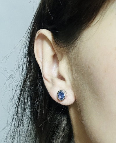 Прекрасные минималистичные пусеты с натуральным тонзанитом. Размер камня 7 x 5 мм. Цвет во всех изделиях разный, нужно подбирать пусеты к кольцу или кольцо к пусетам.. Кольцо очень приятное, гладкое.