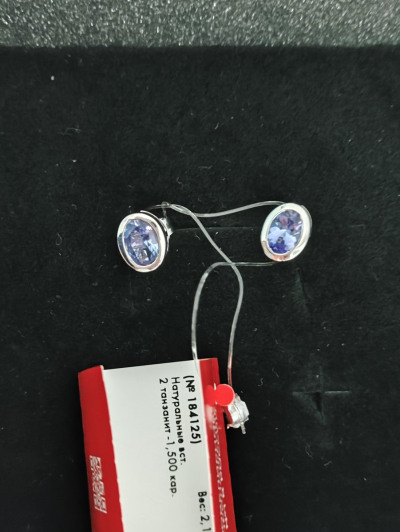 Серьги с 2 танзанитами природными, 1.5 карат;