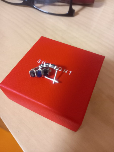 Камешки синие, яркие. Хорошая кратность и вес - замечательные серьги, ничего лишнего. Очень красивые. Выкупила комплект с колечком. Буду первой!