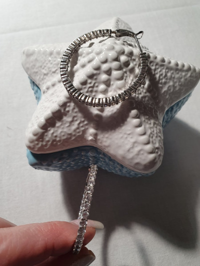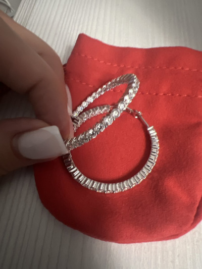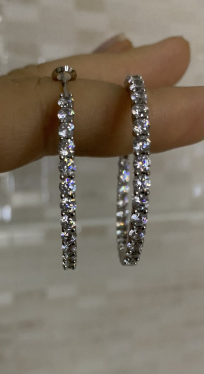Серьги- кольца со вставками по внешней и внутренней граням. Это обеспечивает идеальное сияние и видимость камней, когда серьги в ушах.