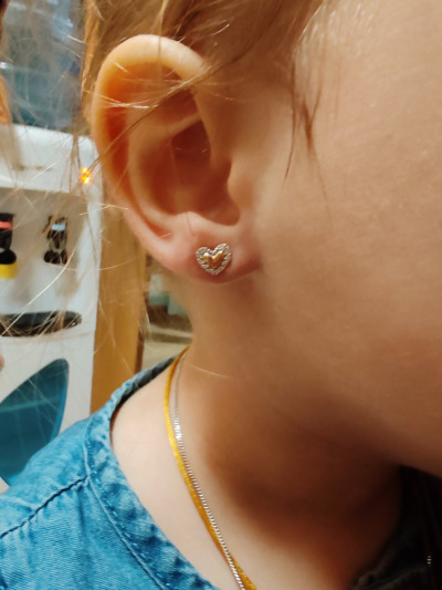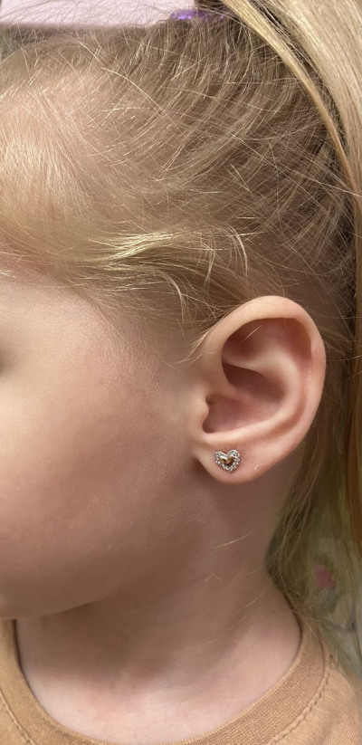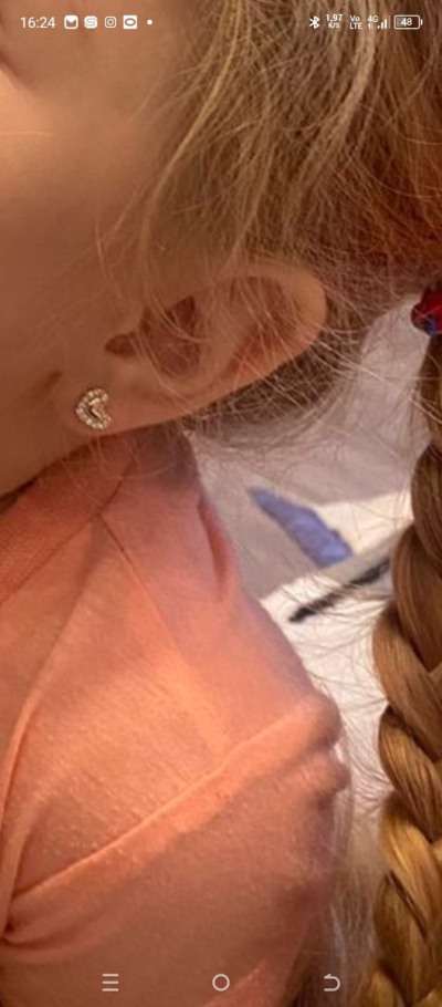 Красивые милые сережки,для девочки 2,5 года самое то. Закрутились хорошо. Единственное,по мне так коротковаты,на мочке ребенка почти вплотную сидят