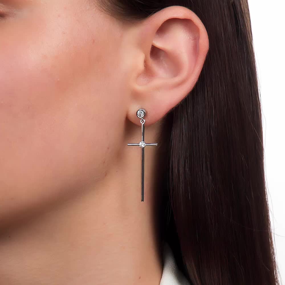 Элегантные серьги с фианитами 🩵 Интересные серьги крестики