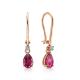 Золотые серьги с бриллиантами природными и рубинами выращенными