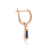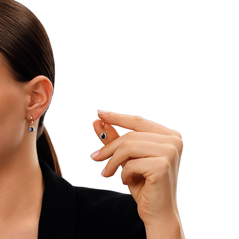Золотые серьги с фианитами и ситаллами сапфир