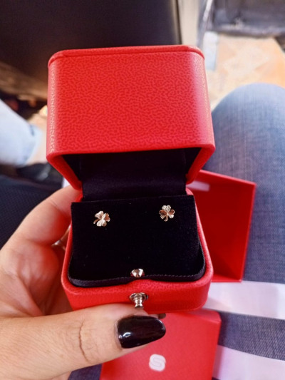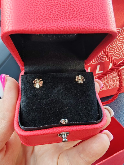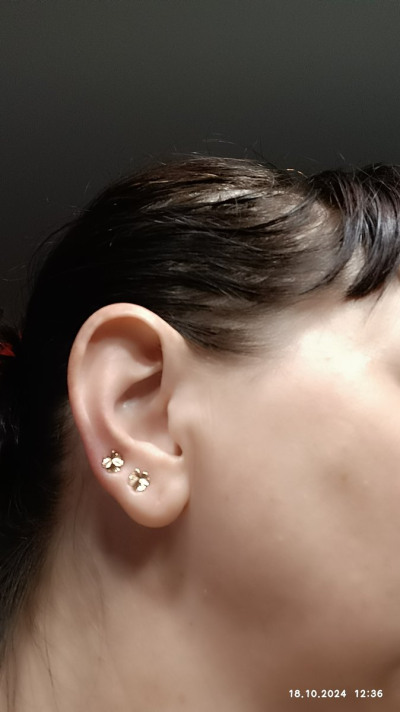 Доброго времени суток! Прокололи дочке ушки,после медицинского сплава решили пока вставить серебро с французским замком,но увы,я родила себе золотого человека,не зашло дочке серебро!И вот когда то подаренные мужем золотые пусеты с винтовым замком в виде музыкальных нот,прижились у дочки,чему конечно же мы несказанно рады и вот сегодня,вернее уже вчера,на свой день рождения я встретила их!Лёгкие,волшебные,теперь уже мой талисман,мои клеверочки!Конечно немного мучительная закрутка для меня,но это того стоит,я в них верю,они принесут удачу!Спасибо что читали отзыв,всего вам самого хорошего! Кстати до этого получила подвеску клевер-это знак!Ещё и цепочку под неё подарили,спасибо и магазину и сотруднику за волшебство момента!Процветания!!!Участвую в розыгрыше,конечно буду верить,но не всегда так сильно везёт как хотелось бы)