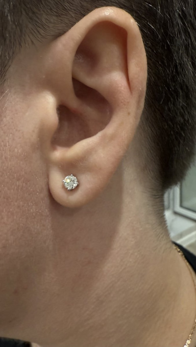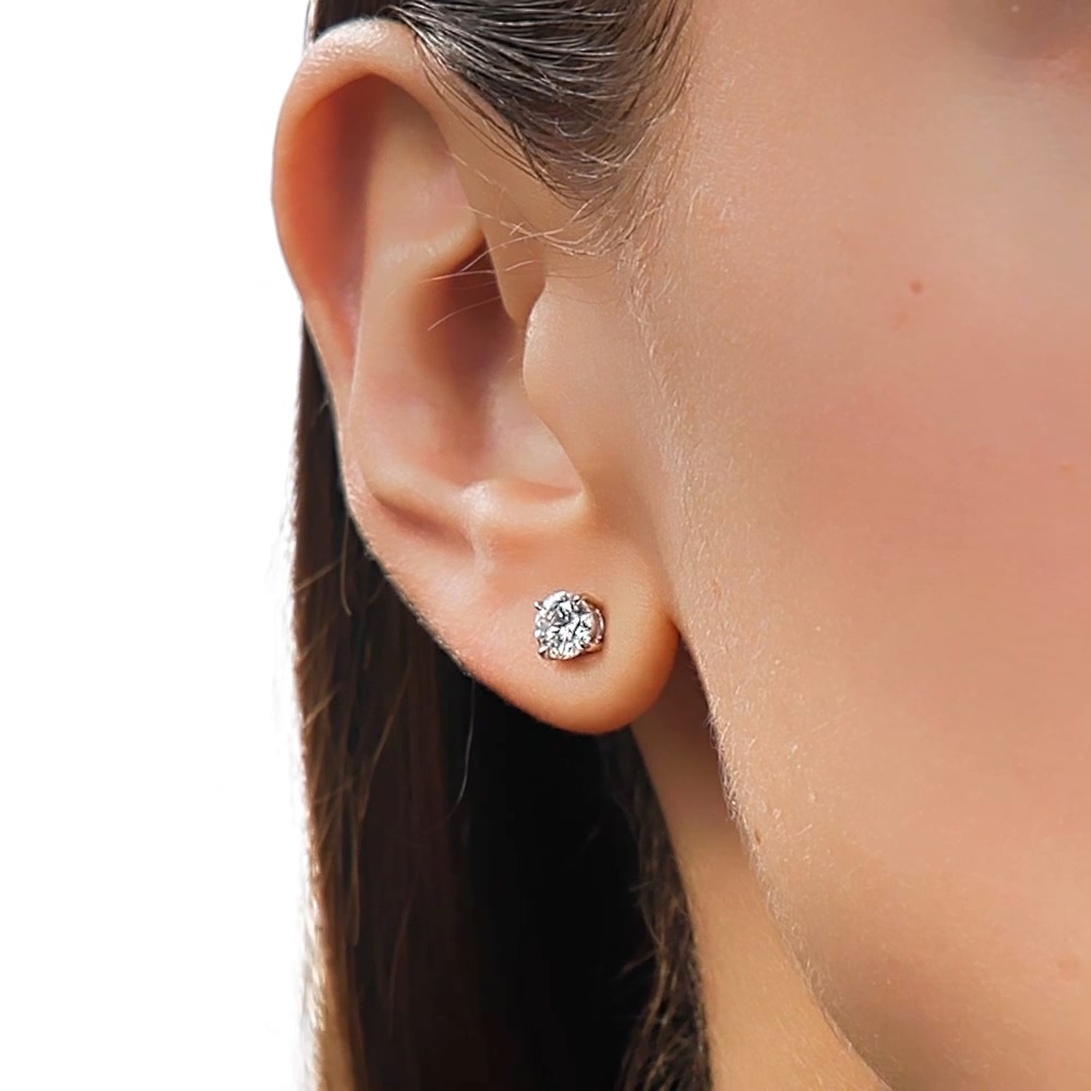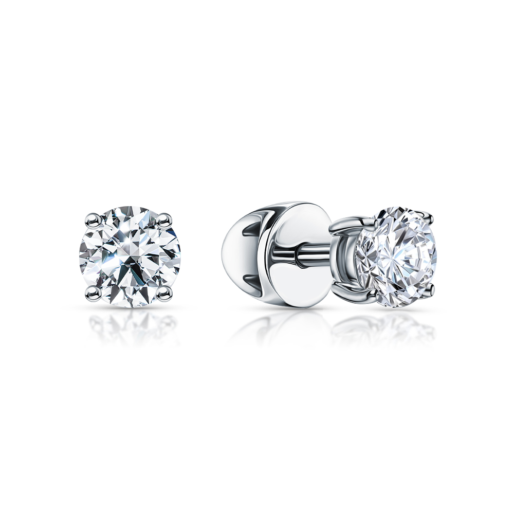 Серьги с 2 бриллиантами природными, 1 карат, огранка круг 57 граней, цвет 3, чистота 3, тип огранки А;