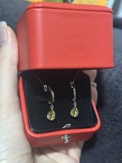 В редких случаях характеристики украшения или упаковка могут иметь отличия от представленных на фото или в описании.Серьги с 2 цитринами природными, 1.82 карат;